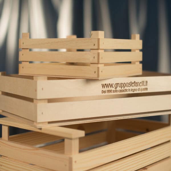 Gruppo Stefanelli produce da oltre 30 anni scatole per vino o liquori e cassette in legno con possibilità di personalizzazione con stampa a fuoco del proprio logo su più lati.